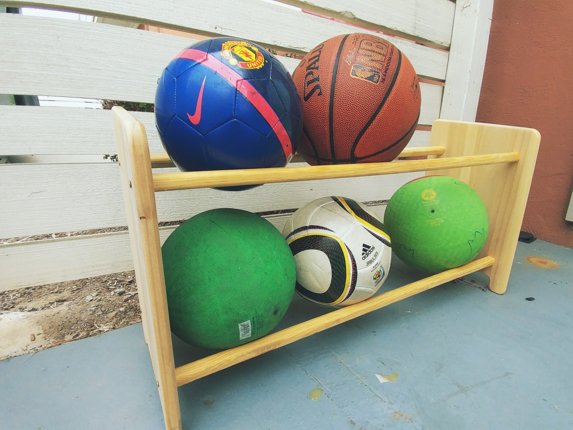 This idea just came up to me after looking at the balls rolling around everywhere in the yard. It was a quick one using just scrap wood at the wood shop.