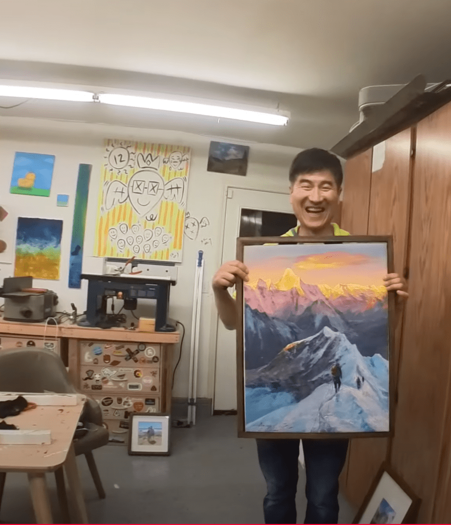 After our trip to the Himalayas (Full Video), we all brought home a canvas painting to remember our final destination: the summit of Island Peak (6,165 m or 20,226 ft).